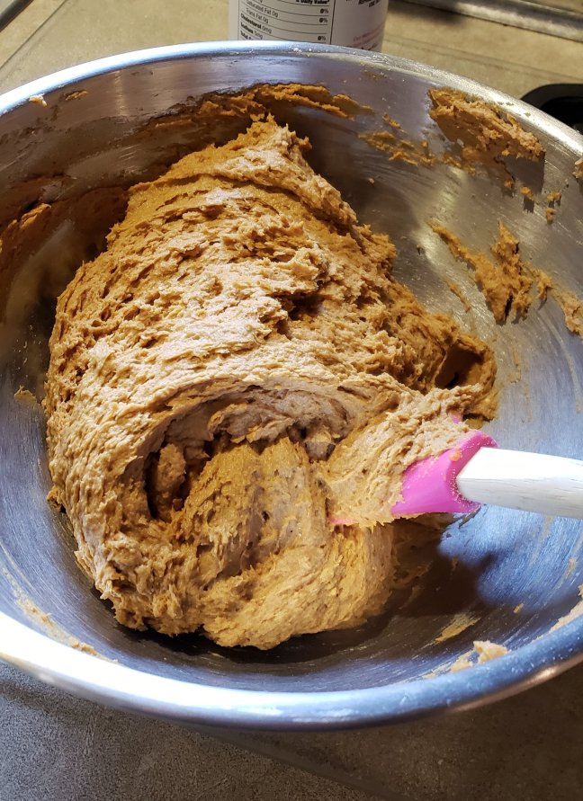 I adapted a pumpkin spice cake recipe from an old Hungry Girl recipe that also lends itself well to muffins. It’s very moist and dense, so I wanted to try it out with my new mini donut pan. The ingredients are pictured above. One box Duncan Hines spice cake, one 15 oz can of pumpkin.